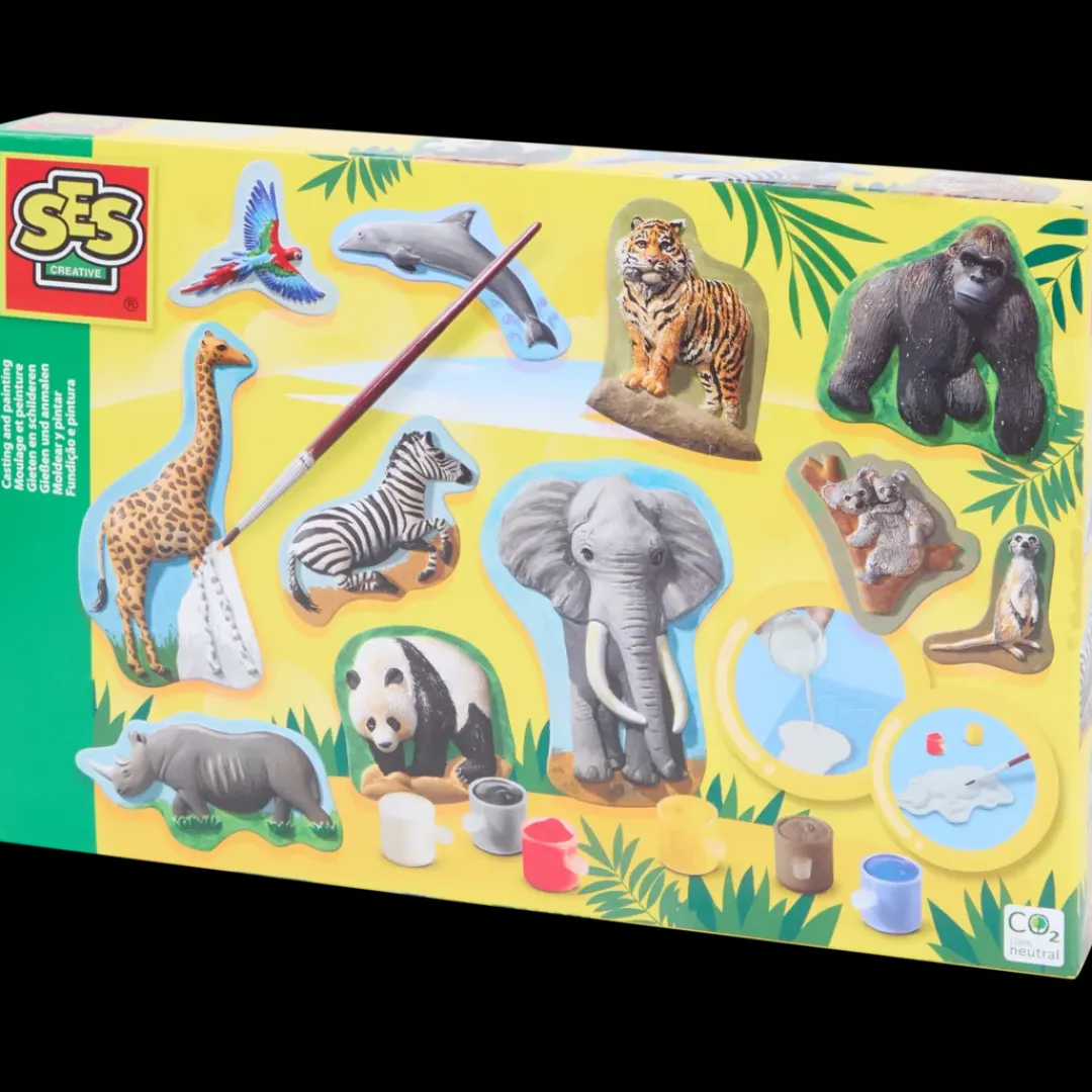 - Contient, entre autres, le plâtre, les moules à plâtre, la peinture, les paillettes et un pinceau